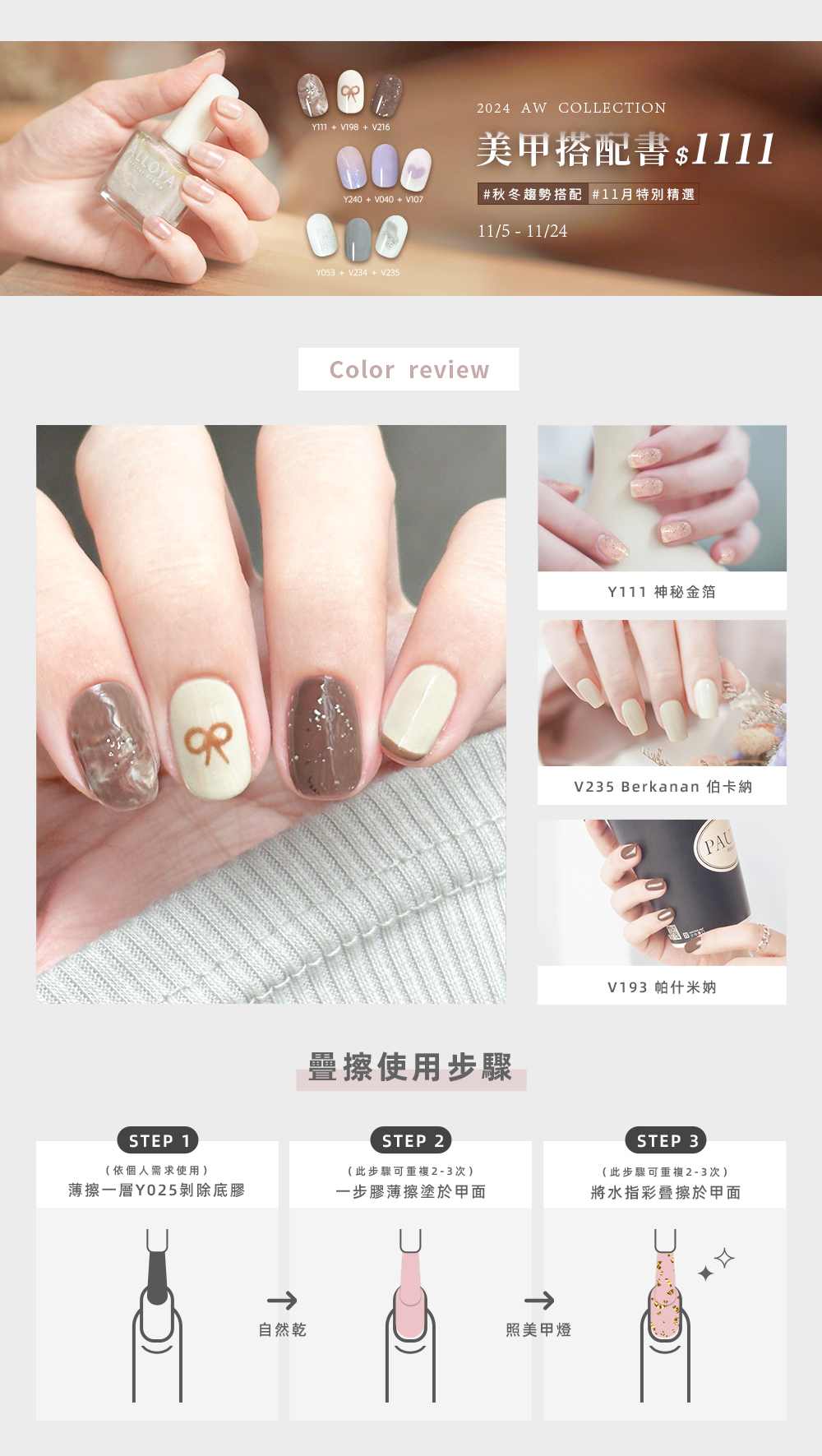 【組合價1111】卡布奇諾 V193/V235/Y111 再送美甲貼 期間限定組合