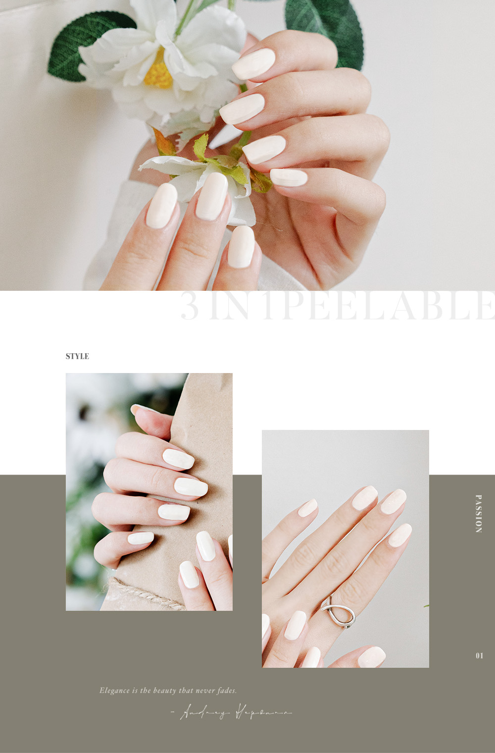 | Q:一步膠免底封也有光澤嗎?|A:光撩一步甲油膠為一步式設計,一般情況下不需要底膠與封層,只需上色後照 LED 燈,甲面就會呈現自然光澤。若希望光澤度更高或增加持久度,也可以依個人需求再加上一層封層膠。 | |