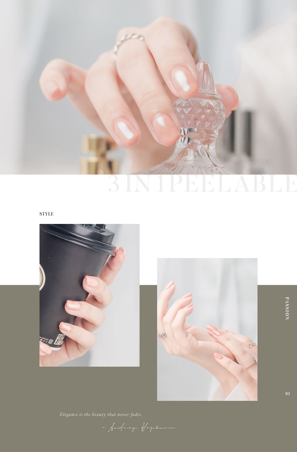 | Q:一步膠免底封也有光澤嗎?|A:光撩一步甲油膠為一步式設計,一般情況下不需要底膠與封層,只需上色後照 LED 燈,甲面就會呈現自然光澤。若希望光澤度更高或增加持久度,也可以依個人需求再加上一層封層膠。 | |